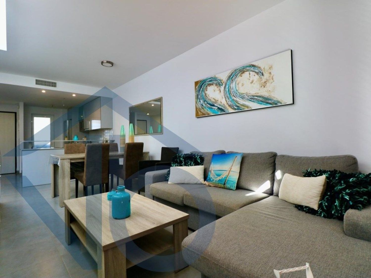Mit einer Wohnfläche von 78 m² verfügt die Wohnung über 2 helle Schlafzimmer, 1 Badezimmer, eine moderne, voll ausgestattete Küche sowie ein großzügiges Wohn- und Esszimmer mit direktem Zugang zur Terrasse. Von hier gelangt man über eine Treppe zum privaten Solarium, das einen herrlichen Blick auf die Umgebung bietet – der perfekte Ort zum Sonnenbaden oder Entspannen.