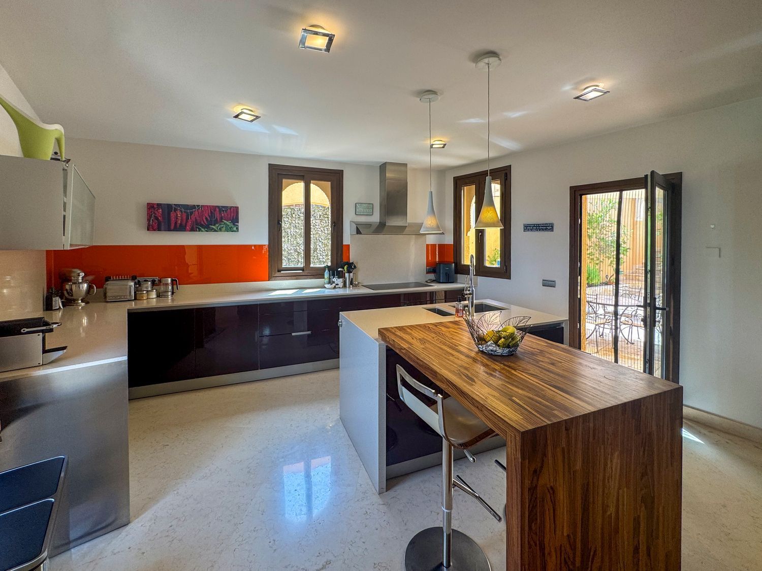 Zur Ausstattung gehören: Fußbodenheizung, Klimaanlage mit Raumregelung, LED-Beleuchtung, 5,5-kW-Solaranlage, elektrischer Poolabdeckung, Sicherheitskameras und Garagentor.