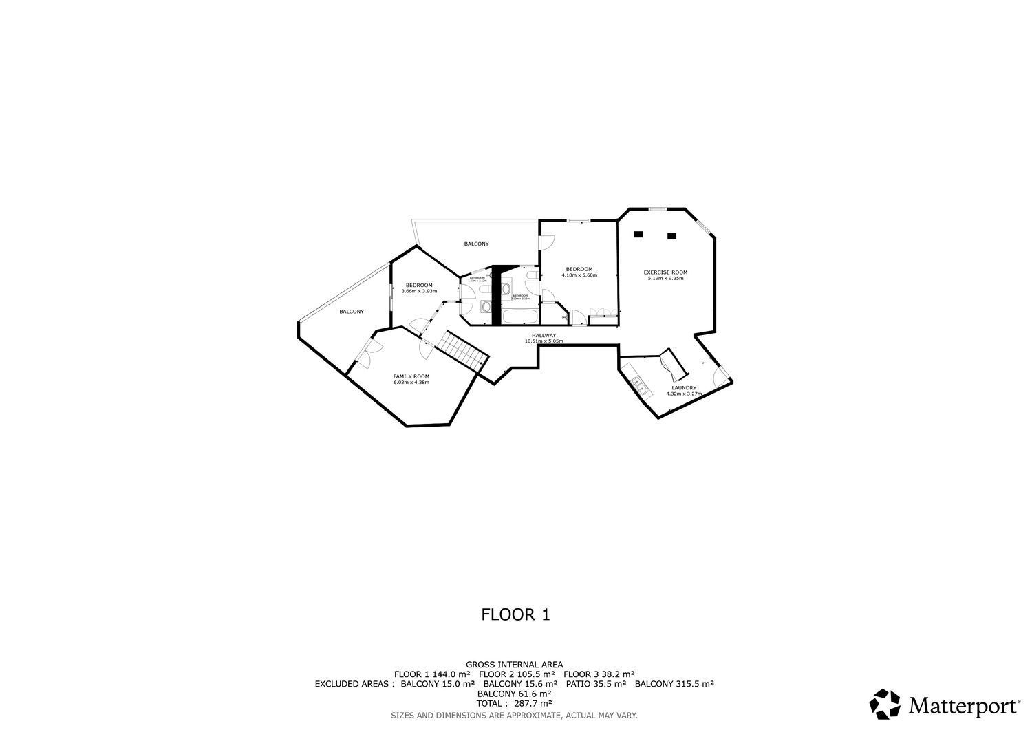 Im Untergeschoss befinden sich zwei weitere Doppelschlafzimmer mit Terrassen, eines davon mit eigenem Bad, das andere mit gemeinsamem Jack-&-Jill-Bad. Außerdem gibt es ein Medienzimmer, Fitnessraum, Weinkühlschränke, Waschküche und Abstellräume.