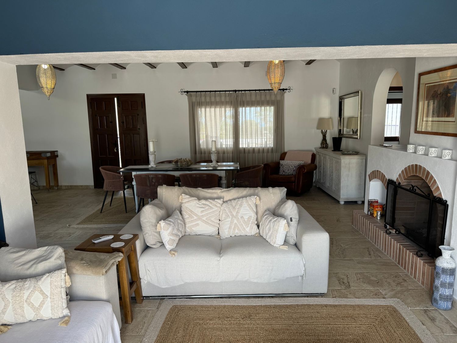 Das Haupthaus bietet ca. 150 m² Wohnfläche auf einer Ebene. Der Eingangsbereich ist teilweise überdacht und mit Bögen versehen, die eine große Esstafel für Mahlzeiten im Freien umrahmen. Von hier gelangt man direkt in den offenen Wohn- und Essbereich mit moderner Küche.