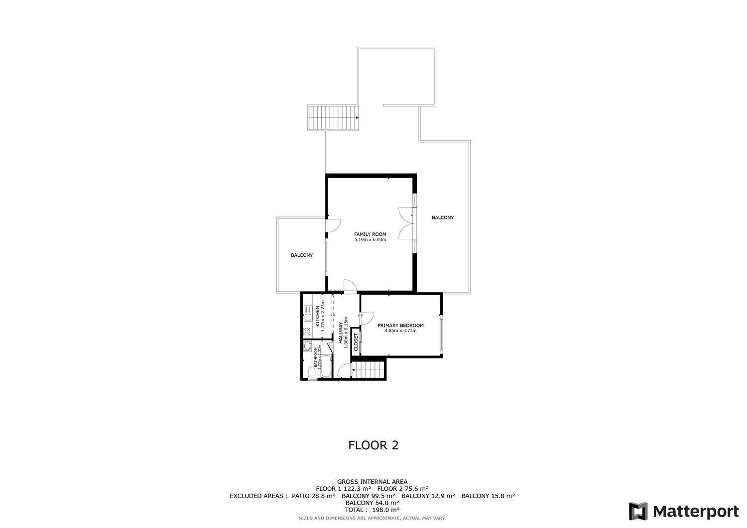 Es gibt drei Doppelschlafzimmer: das Hauptschlafzimmer mit eigenem Bad, ein weiteres, das derzeit als Büro genutzt wird, und ein drittes mit Zugang zum Familienbad. Eine Waschküche rundet das Angebot ab.